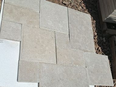 Den tumlede kalkstensoverflade har fremragende skridsikkerhed og giver fliserne et charmerende antikt præg.